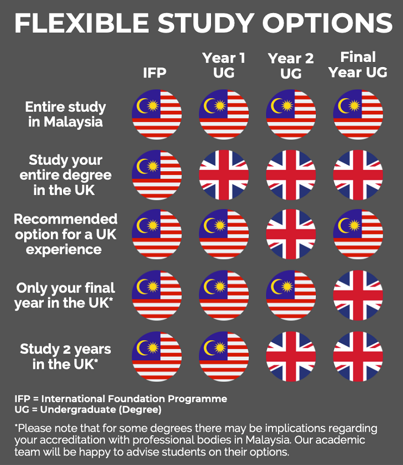 Students should also be aware that there may be implications related to professional accreditation in Malaysia for students wishing to undertake mobility and transfer; our team will be happy to advise students accordingly.